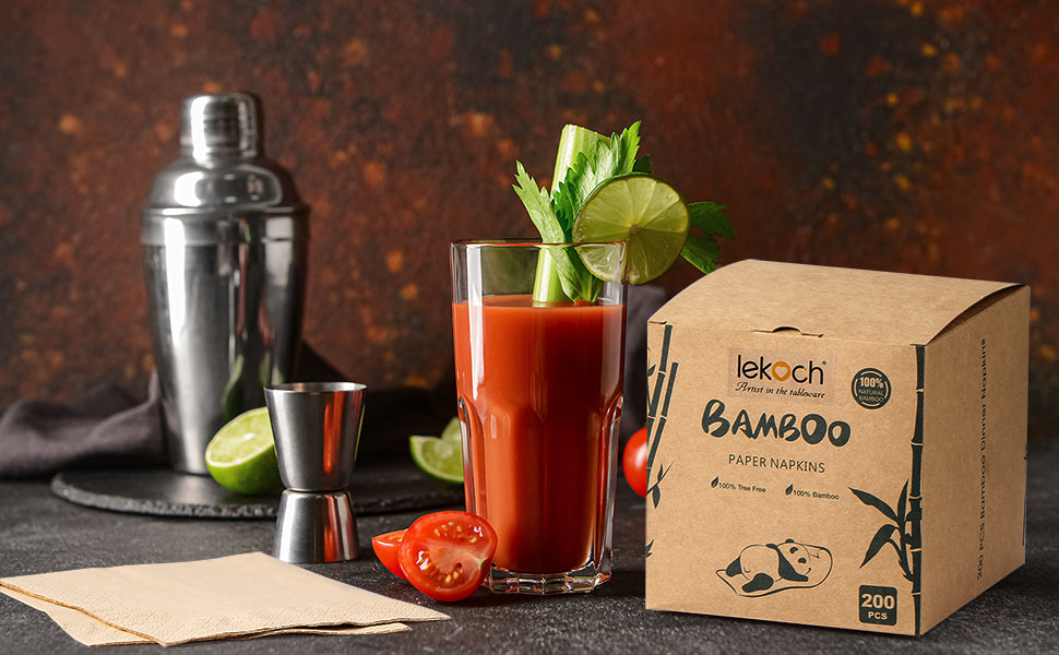 • FEATURES: LEKOCH cocktail napkins are thick, strong, durable, and comfortable to the touch. The paper cocktail napkins are 2-ply and have an elegant 1 l/2" scalloped and diamond-ingrained decorative border along all edges. These bamboo cocktail napkin are strong when wet and are very absorbent. Bamboo napkins also do not tear easily.