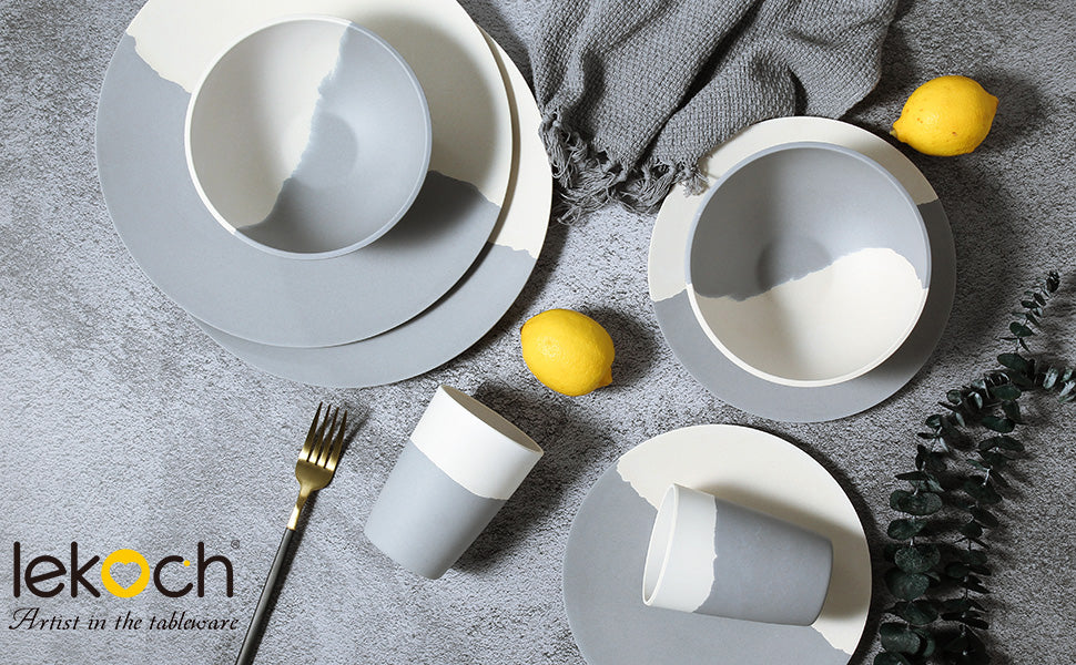 LEKOCH 8 Pieces Harmony Series - Moon, Bio Bamboo Fiber Reusable Dinnerware Set ( Grey )