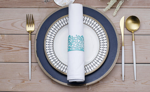 Lekoch 50pcs Disposable Rose Flower Paper Napkin Rings(Blue)