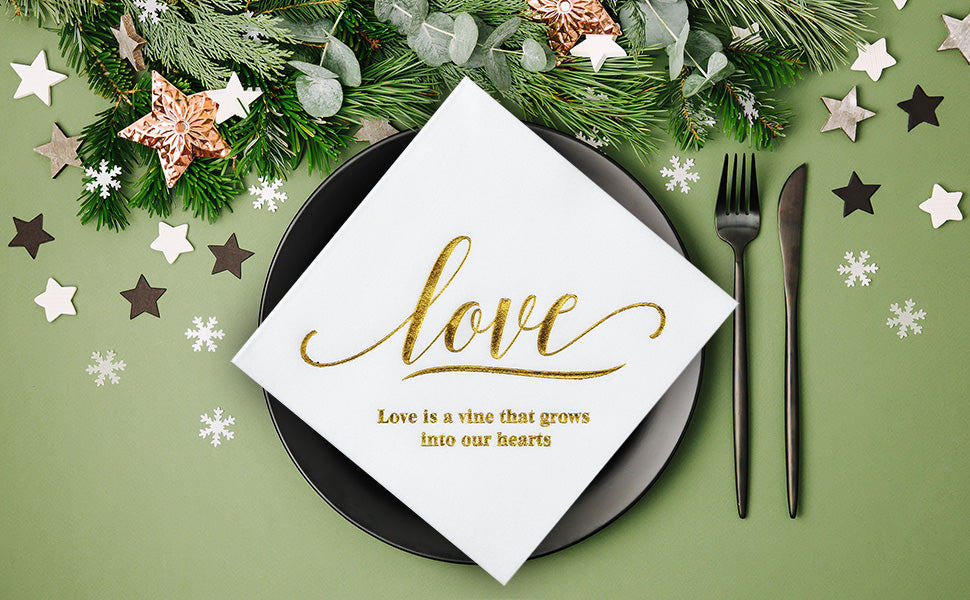 LEKOCH 50 PCS Disposable White Letter Valentine's Day Napkins, Linen Feel Airlaid Decorative Hand Towel Napkins for Birthday Party Wedding