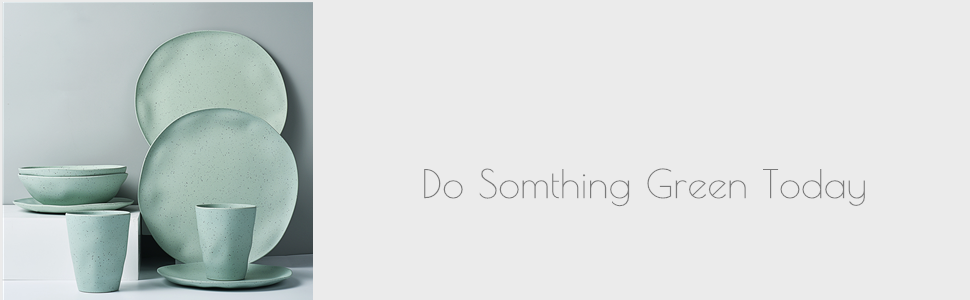 LEKOCH 8 Pieces Wave Series Green Bamboo Dinnerware Set Biodegradable & Eco Friendly Plates Set