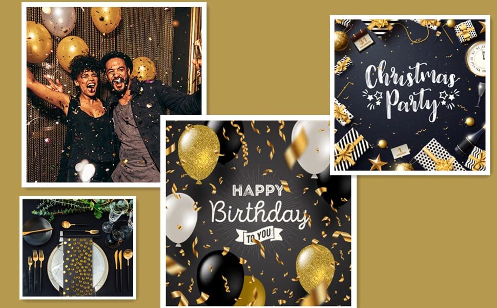 LEKOCH 50 PCS Serviettes noires jetables avec Gold Dot, Linen Feel Airlaid Serviette décorative Serviettes noires pour fête d’anniversaire Mariage