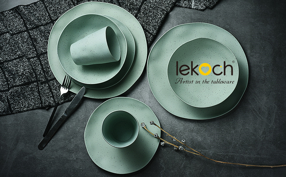 LEKOCH Ensemble de vaisselle en bambou vert série Wave 8 pièces Ensemble d'assiettes biodégradables et écologiques
